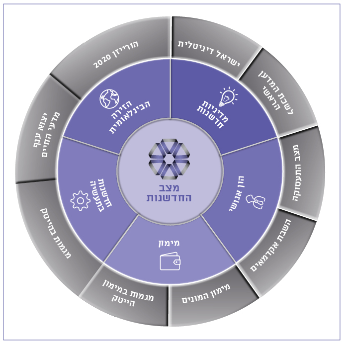 בדוח עולות סוגיות המעסיקות כל אחד מאיתנו, השותף לקידומה של תעשיית ההייטק ולהטמעת החדשנות במגזר הפרטי והציבורי. סקירת הסוגיות האלו נועדה לשמש כבסיס לשיח מתמשך בין התעשייה, המשקיעים והיזמים לממשלה ולכוון את מאמצינו המשותפים להשגת שגשוג כלכלי באמצעות חדשנות טכנולוגית.